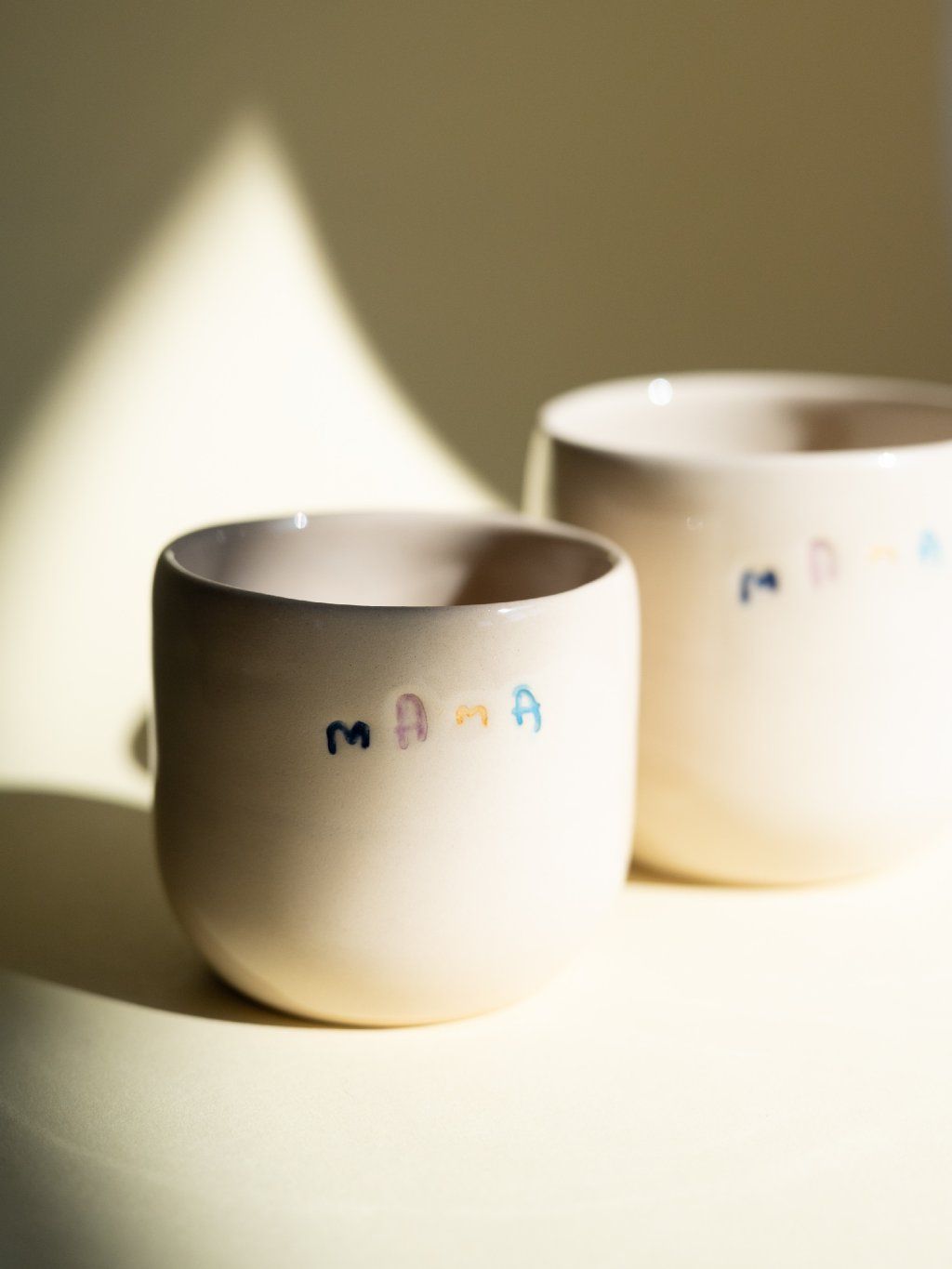 Ručně vyráběný šálek z béžové hlíny. S glazovaným nápisem MAMA vám zpříjemní popíjení vašeho oblíbeného nápoje. Ať už je to káva nebo čaj.